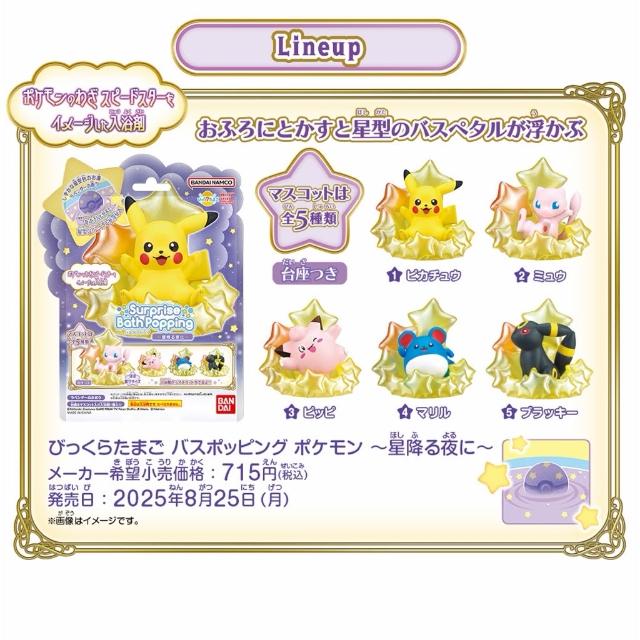 BANDAI 萬代日本BANDAI萬代 寶可夢星空降臨之夜泡澡球 星夜泡澡球 皮卡丘 皮皮 月亮伊布 瑪力露 夢幻 泡澡球