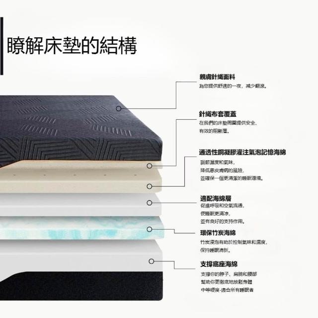 BETENSH 單人3尺 透氣記憶棉竹炭海綿床墊|腰痠背痛必備 |防蟎抗菌,舒適護脊|
