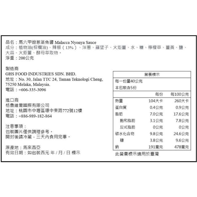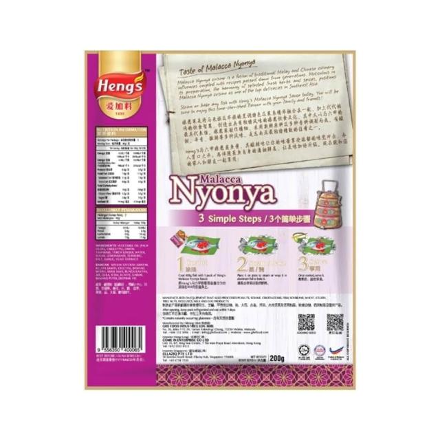 馬六甲娘惹蒸魚醬(馬來西亞 Hengs 愛加料 Malacca Nyonya Sauce 200g)