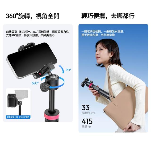 Ulanzi 優籃子MT-44B二代4腳自拍桿(手機相機兩用雲台設計)