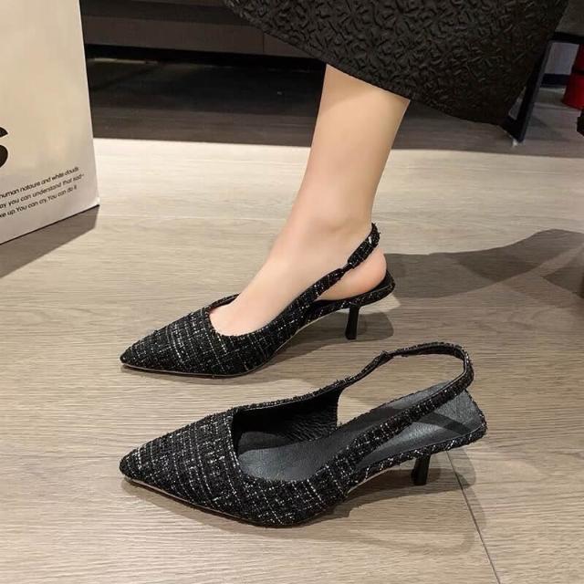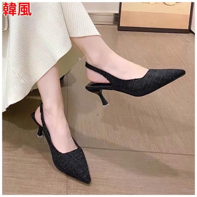 韓風時尚美鞋館 尖頭中跟鞋(懶人鞋 涼鞋 跟鞋 粗跟涼鞋 大尺碼 尖頭中跟鞋 高跟鞋 黑色 粗跟OL舒適休閒單鞋女鞋