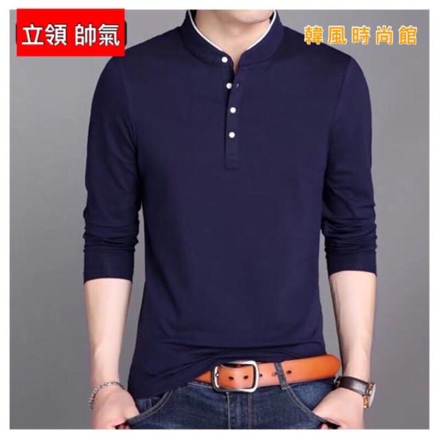 韓風時尚美鞋館 韓系棉質polo衫(台灣現貨 ✠◊ 長袖 立領上衣 秋冬款 衣服 純棉純色 韓系舒爽高棉質衣服 T恤polo衫 英倫潮流JKSM))