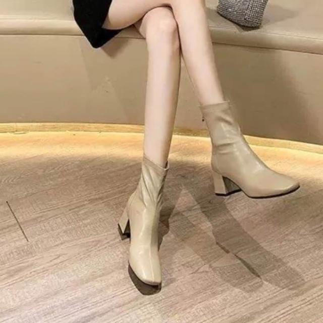 韓風時尚美鞋館 韓版方頭粗跟靴(韓版方頭粗跟靴 韓版靴 瘦瘦靴 粗跟靴 女靴 靴子 方頭靴皮靴 短靴 粗跟靴 跟靴 靴子