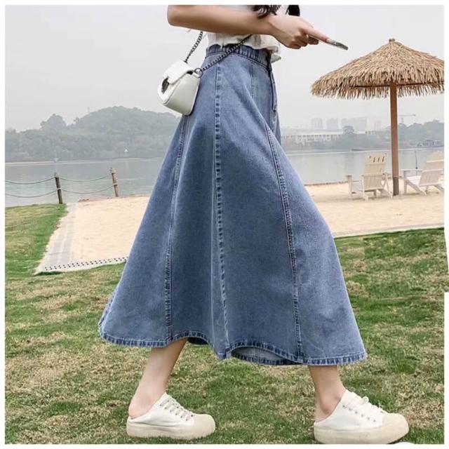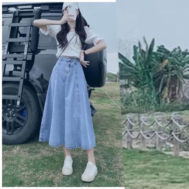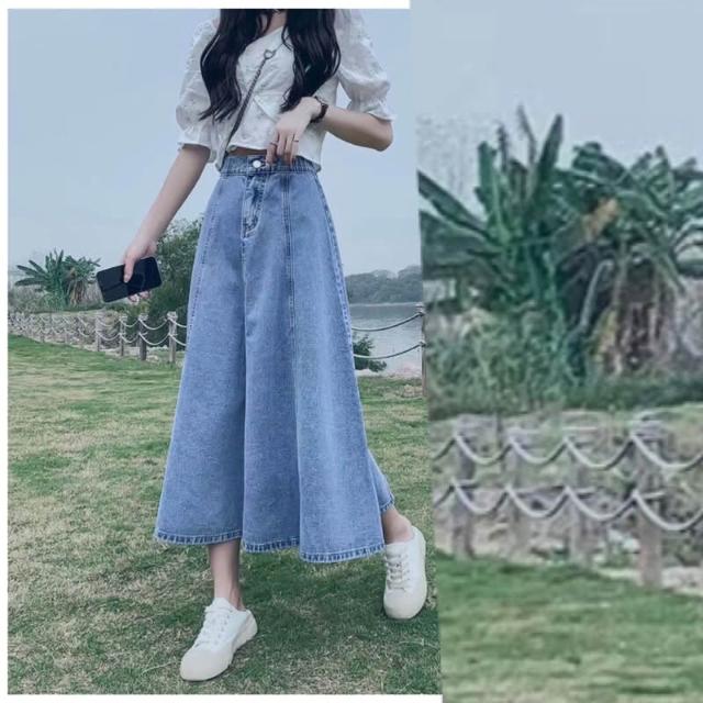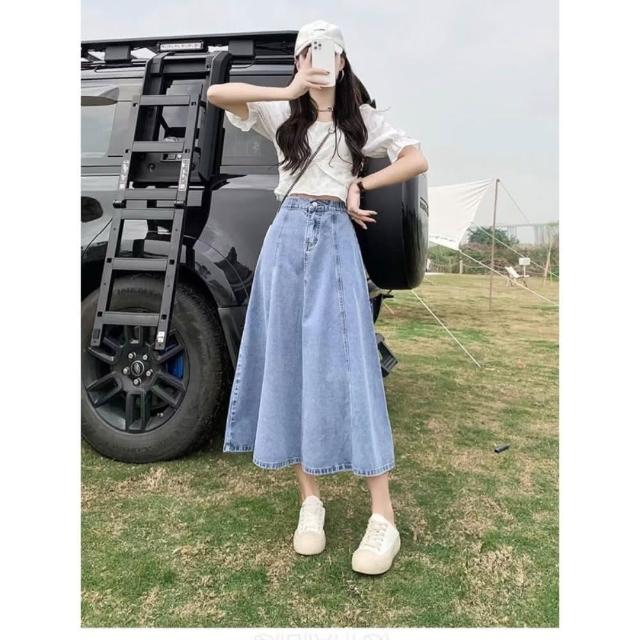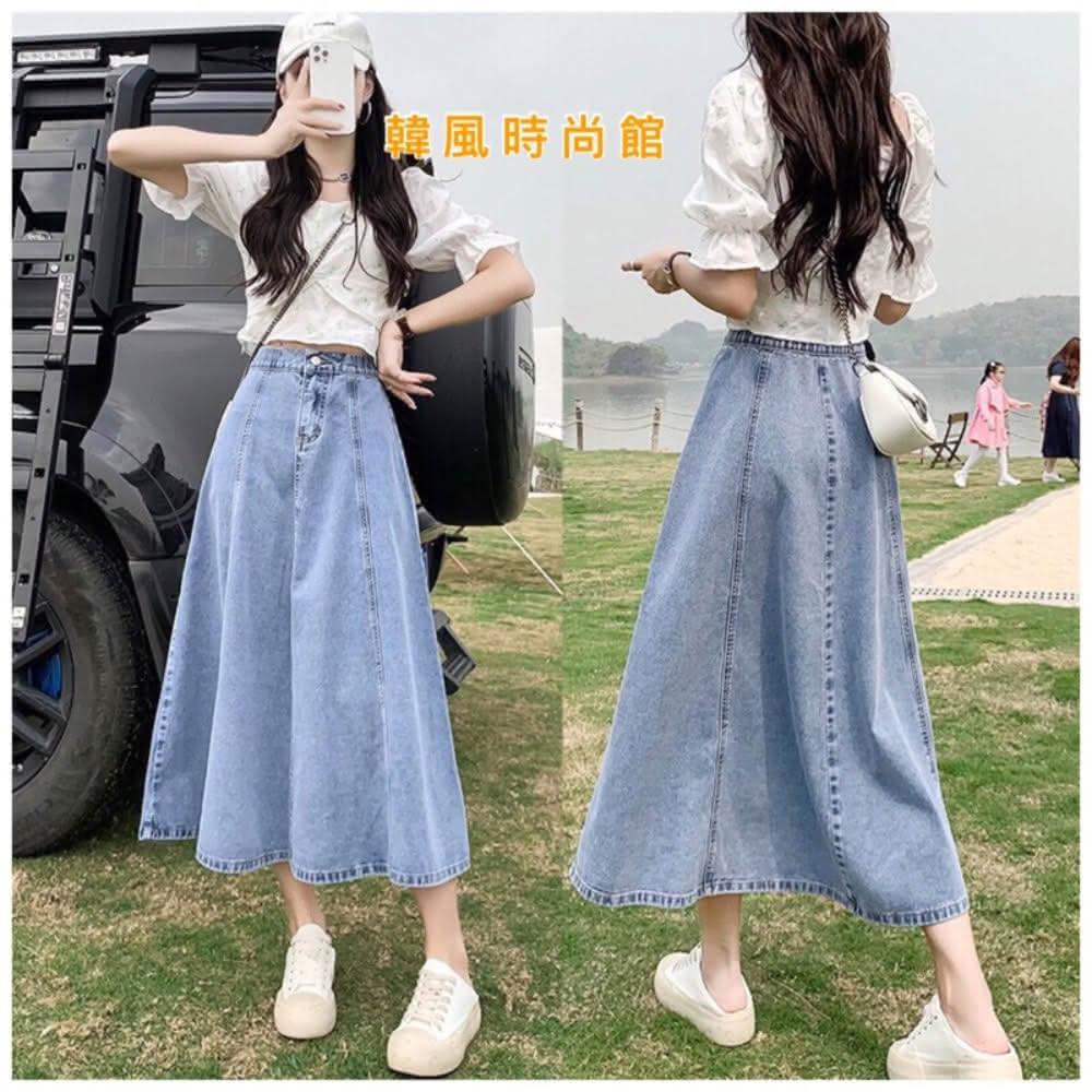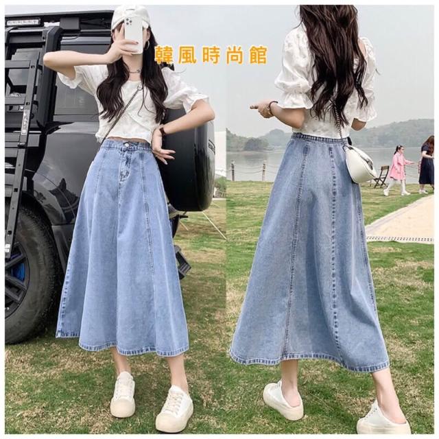 韓風時尚美鞋館 顯瘦牛仔裙牛仔裙 長裙 顯瘦A字 傘狀 後鬆緊 牛仔半身裙 梨形救星 假跨寬 顯瘦 半身裙 牛仔裙