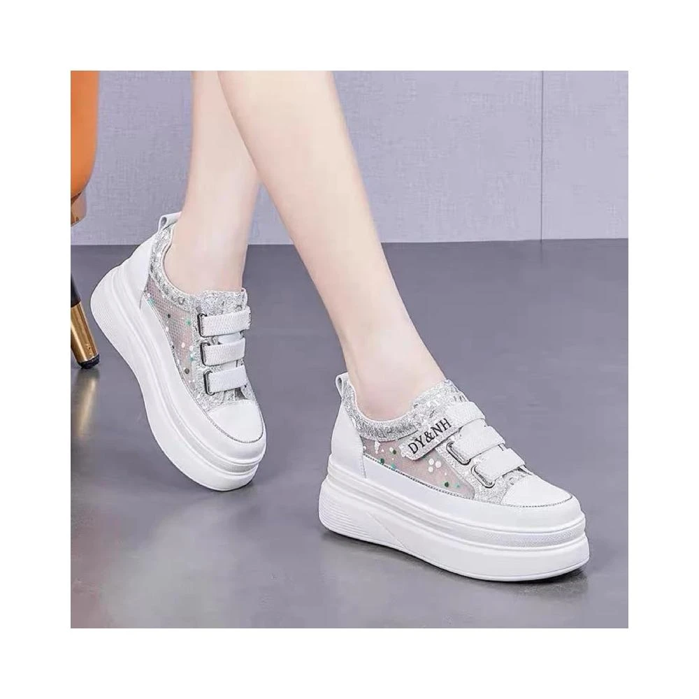 韓風時尚美鞋館 增高鞋 厚底鞋 鬆糕厚底小白鞋 夏季新款 魔術帶 透氣網 小白鞋 百搭休閒
