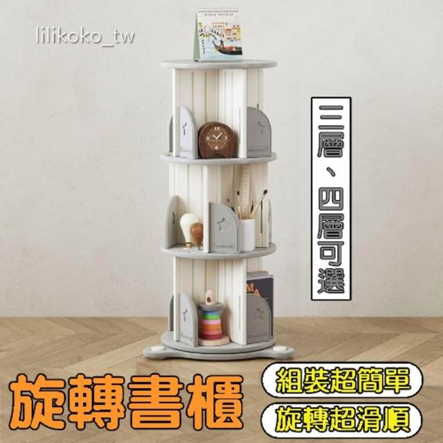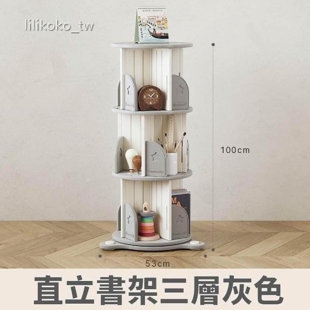 哩哩摳摳旋轉書櫃(書架 旋轉書架 旋轉書櫃三層 兒童書架 兒童書櫃 書本收納 書架收納 書架櫃 直立書櫃)