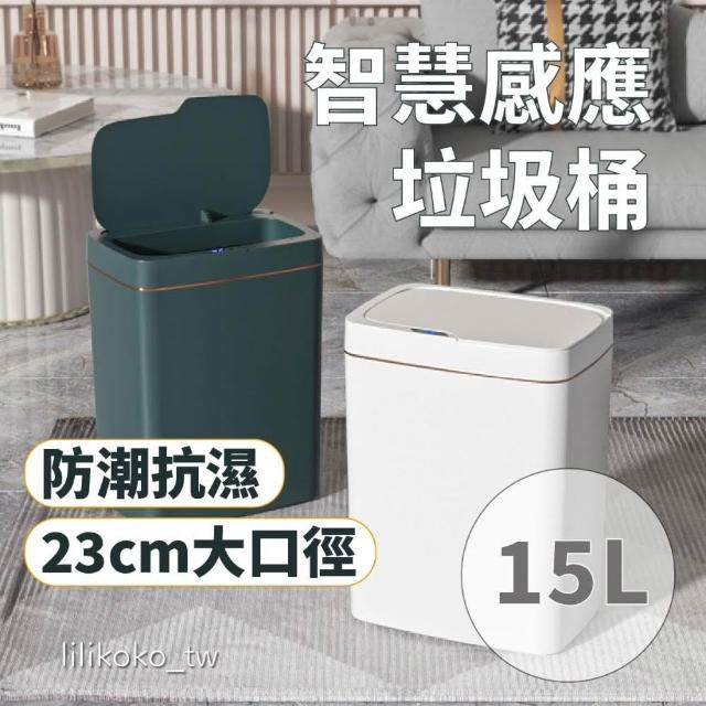 感應垃圾桶(垃圾桶 智能垃圾桶 感應垃圾桶15公升電池款白色 自動垃圾桶 電動垃圾桶 小垃圾桶 掀蓋垃圾桶)