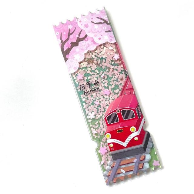流沙冰箱貼 創意禮品 台灣 九份 阿里山櫻花 票根造型吸鐵 新格子 TR台灣鐵道