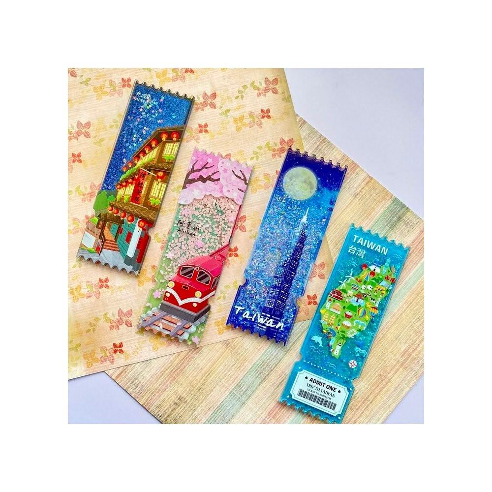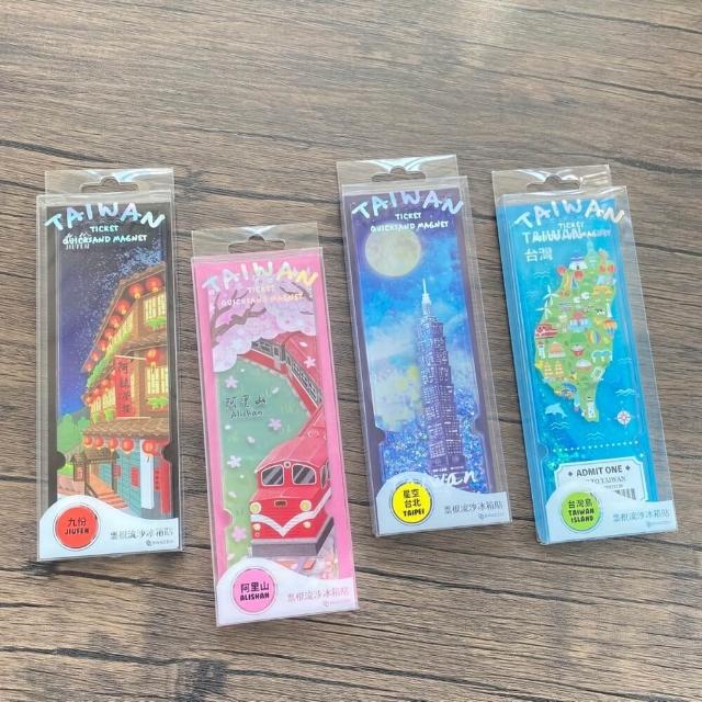 流沙冰箱貼 創意禮品 台灣 九份 阿里山櫻花 票根造型吸鐵 新格子 TR台灣鐵道