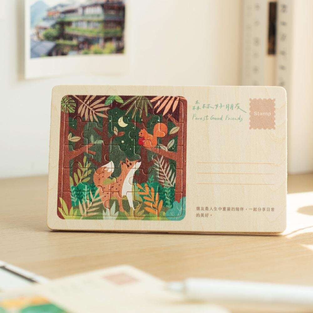 木製明信片 插畫拼圖 桌上擺飾