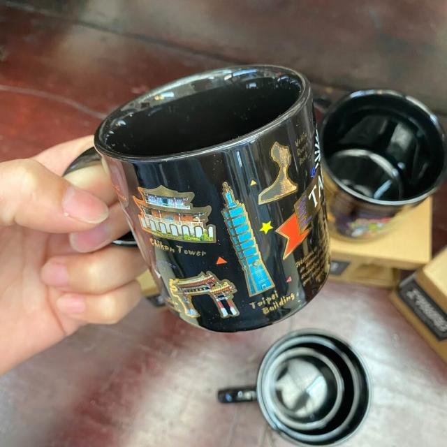 黑金馬克杯 黑色質感馬克杯 金色燙印圖案 小巧容量160ml 台灣紀念品 新格子 TR台灣鐵道