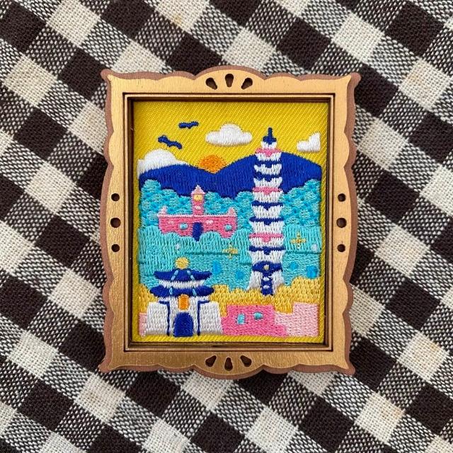 猴子設計刺繡磁鐵 刺繡小畫框 木質畫框磁鐵 台灣景點 101大樓 阿里山 台灣紀念品 猴子設計 TR台灣鐵道