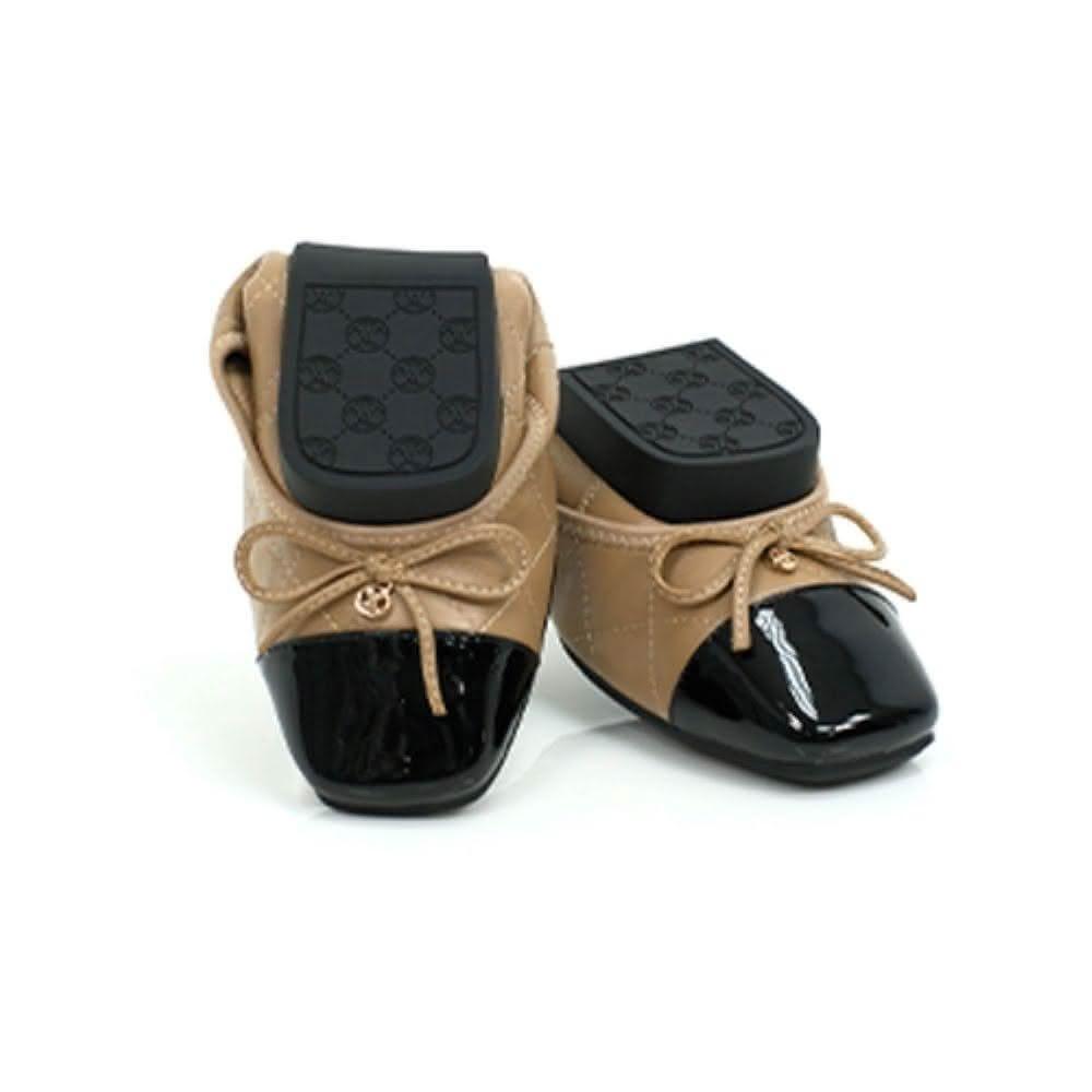 viina芳達4· 小香風真皮拼接菱格紋方頭摺疊平底娃娃鞋-卡其(版型偏小1碼)