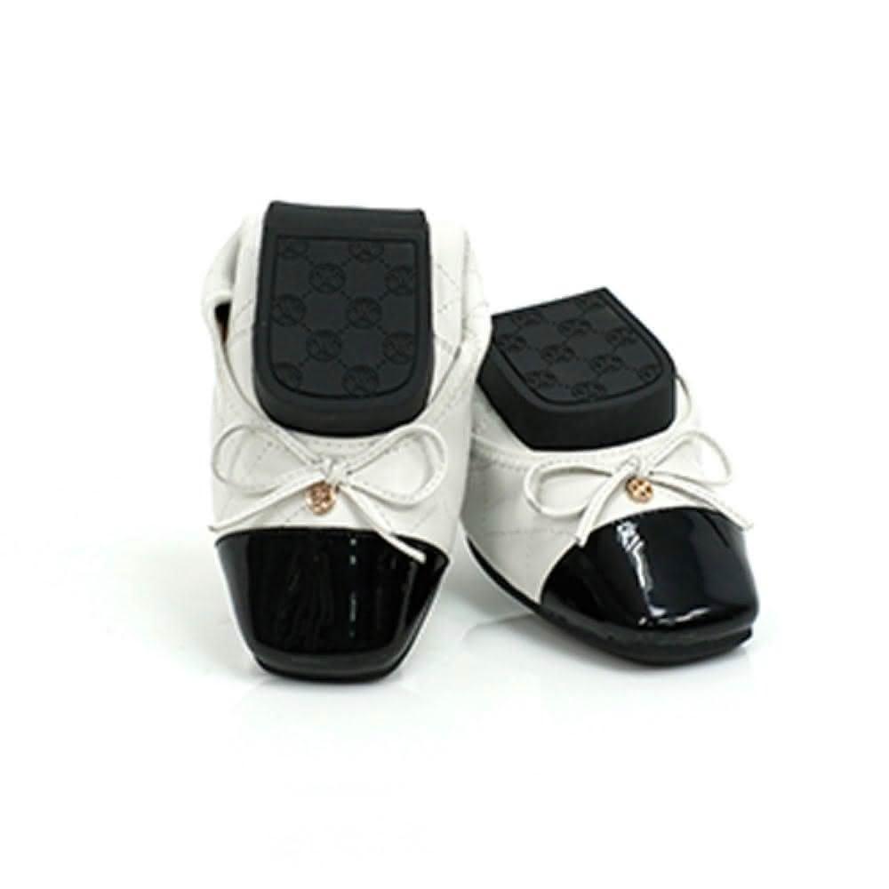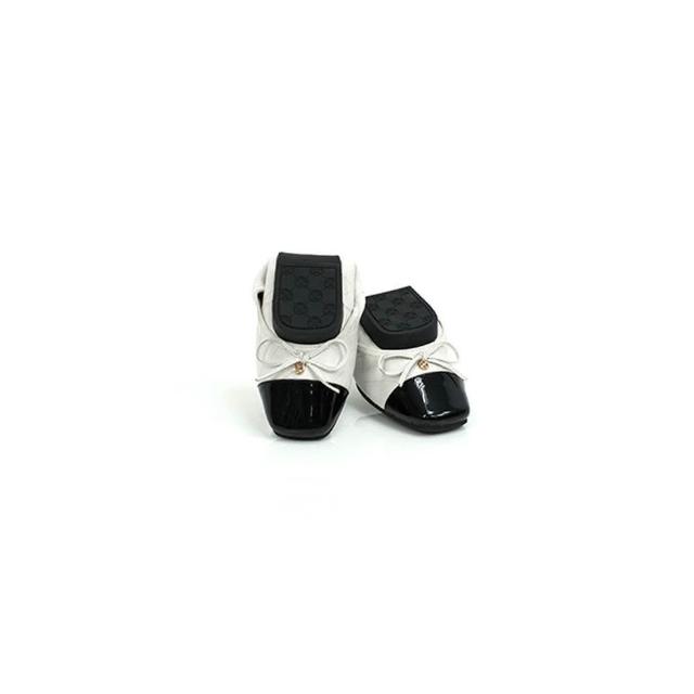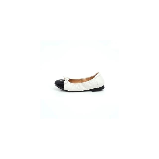 viina芳達4· 小香風真皮拼接菱格紋方頭摺疊平底娃娃鞋-白(版型偏小1碼)