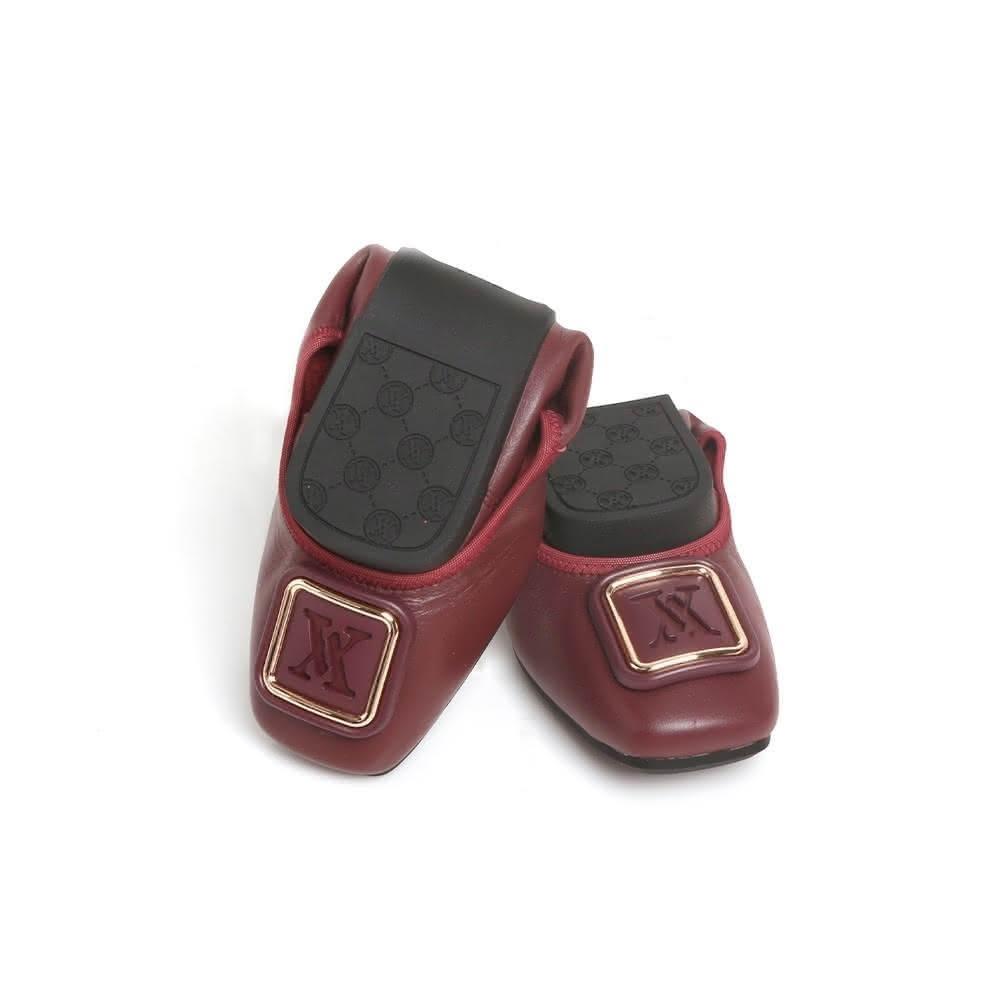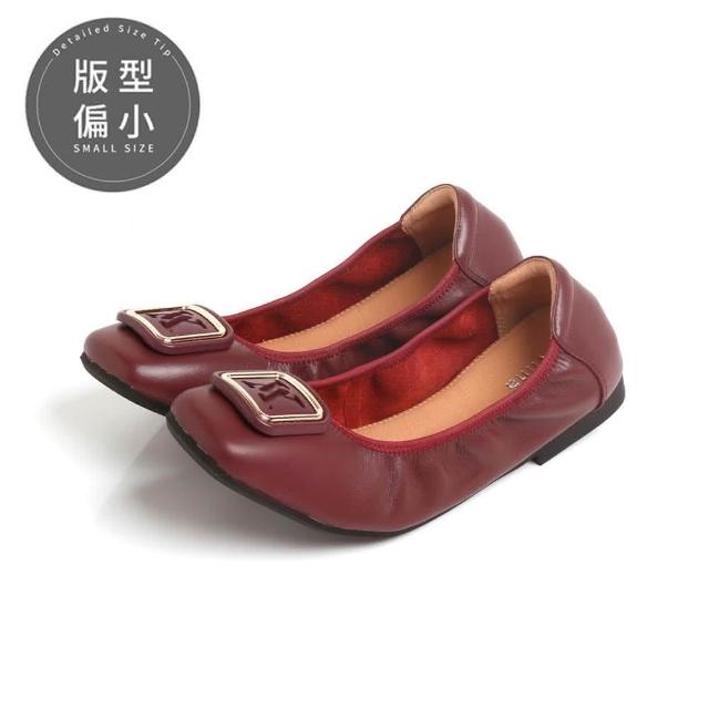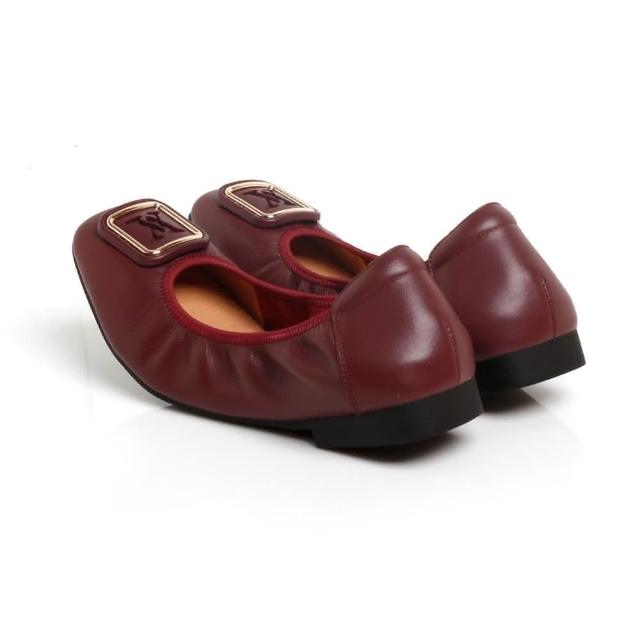 viina芳達2· 全真皮金框logo方頭摺疊平底娃娃鞋-酒紅(版型偏小1碼)