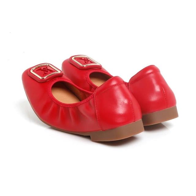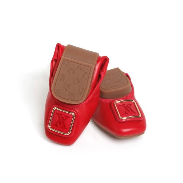 viina芳達2· 全真皮金框logo方頭摺疊平底娃娃鞋-紅(版型偏小1碼)