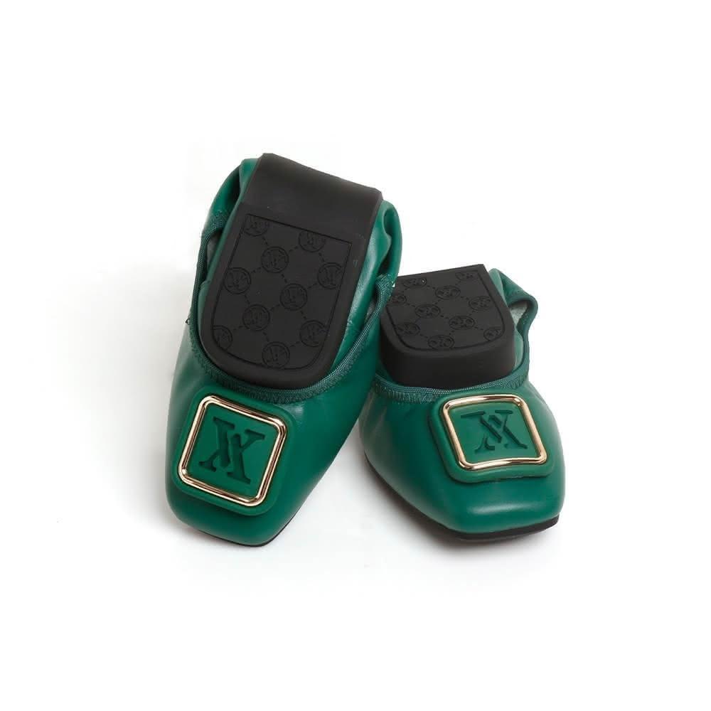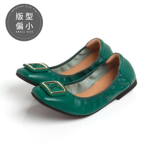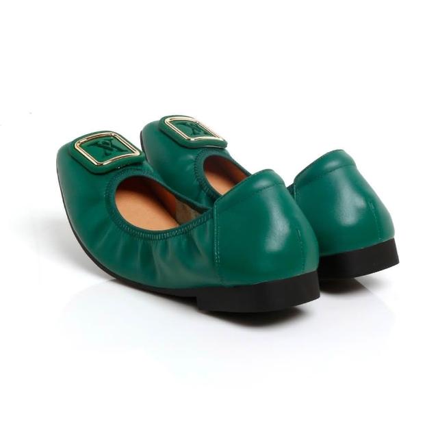 viina芳達2· 全真皮金框logo方頭摺疊平底娃娃鞋-綠(版型偏小1碼)