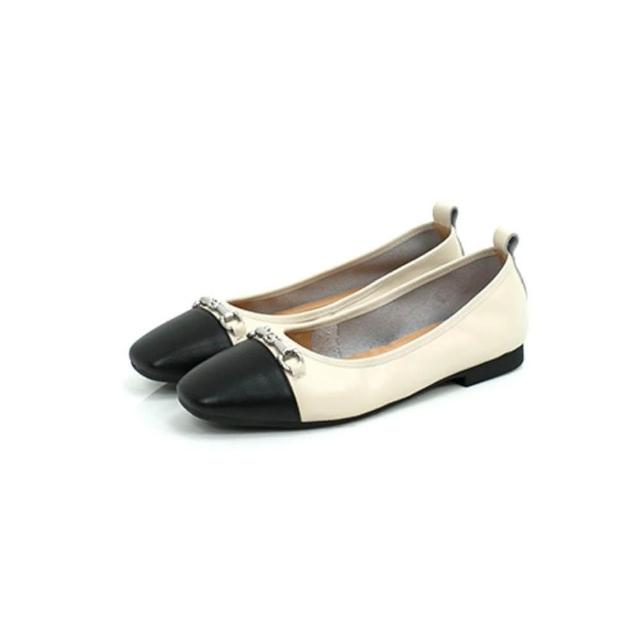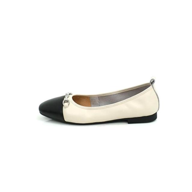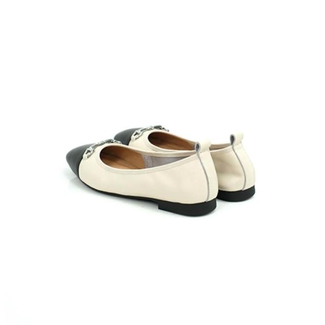 viina全真皮經典馬銜扣平底娃娃鞋-米白