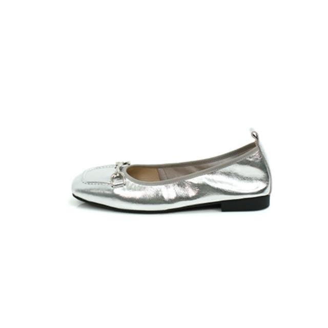 viina經典馬銜釦真皮柔軟平底鞋-銀