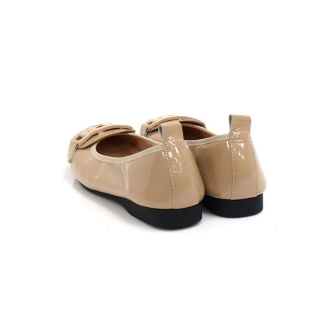 viina漆面方頭柔軟真皮平底娃娃鞋-杏