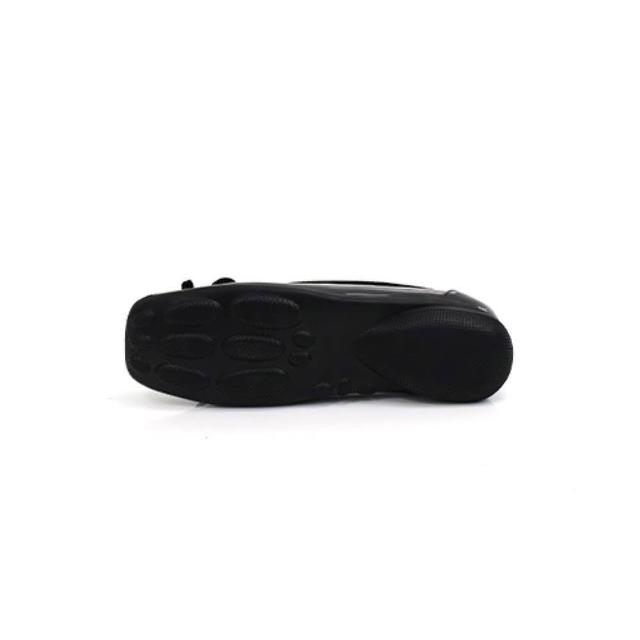 viina全真皮復古蝴蝶結方頭平底娃娃鞋-黑