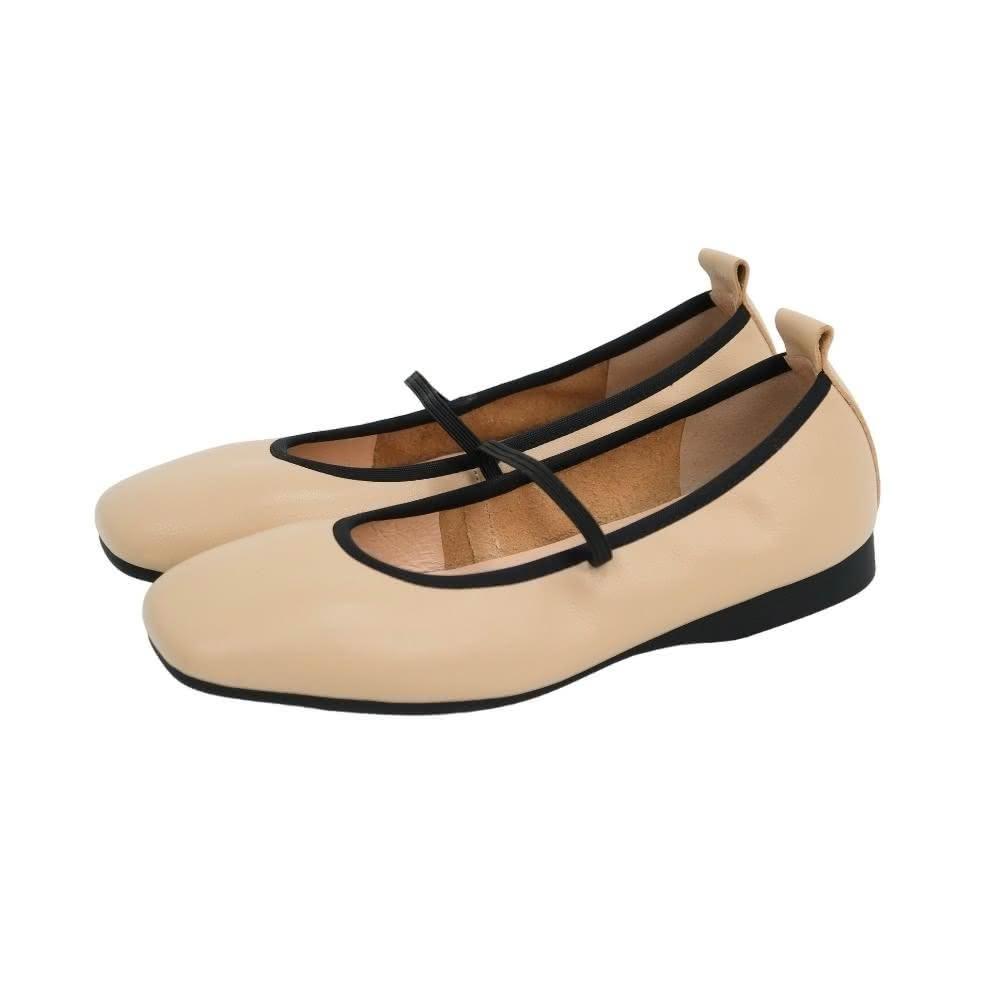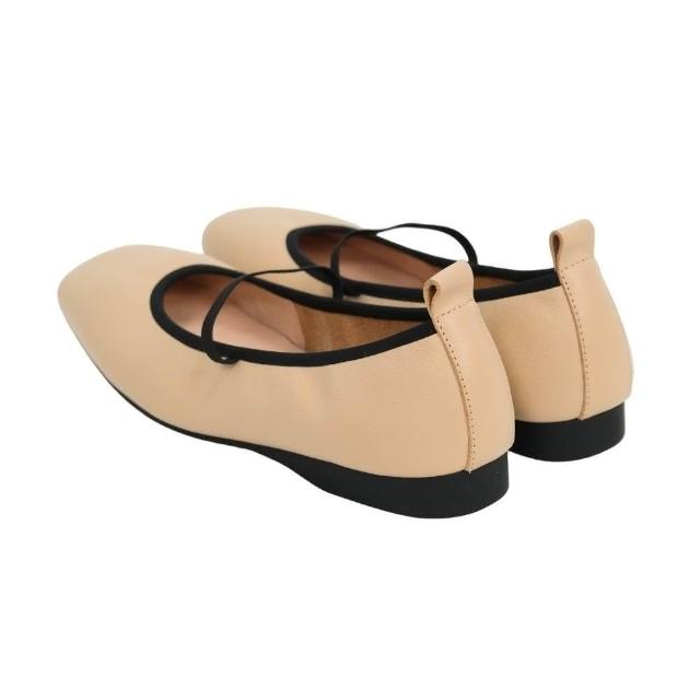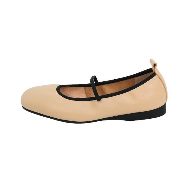 viina素面真皮細帶瑪莉珍平底娃娃鞋 -杏