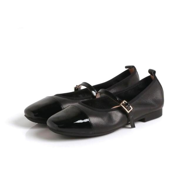 viina牛皮小香風拼接復古瑪麗珍鞋-黑