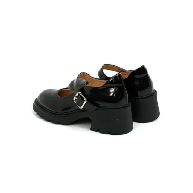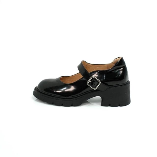 viina個性漆面真皮瑪莉珍高跟厚底鞋-黑