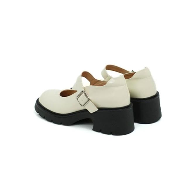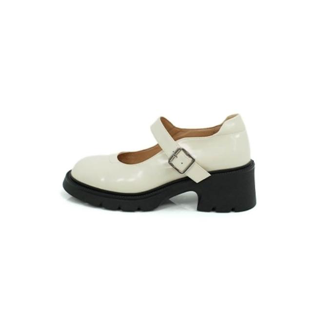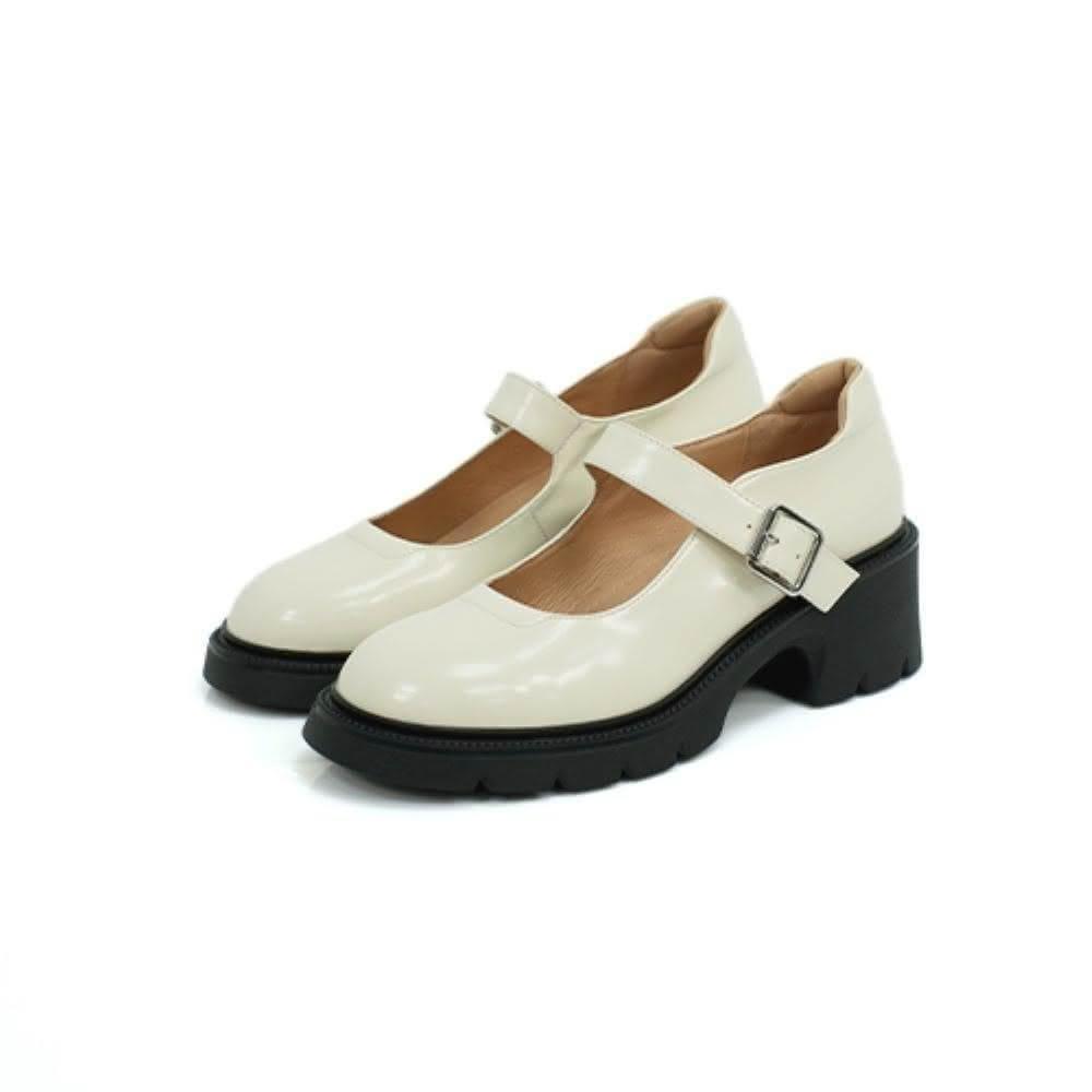 viina個性漆面真皮瑪莉珍高跟厚底鞋-米白