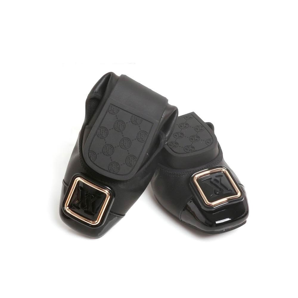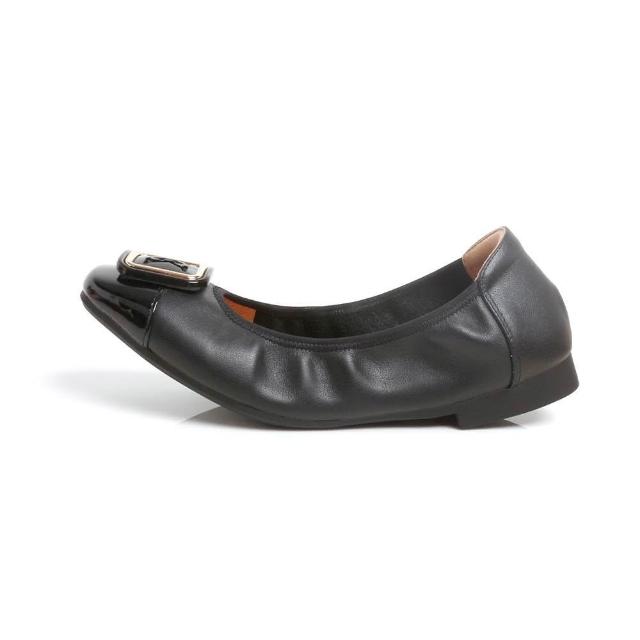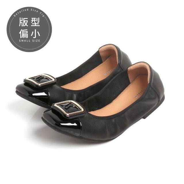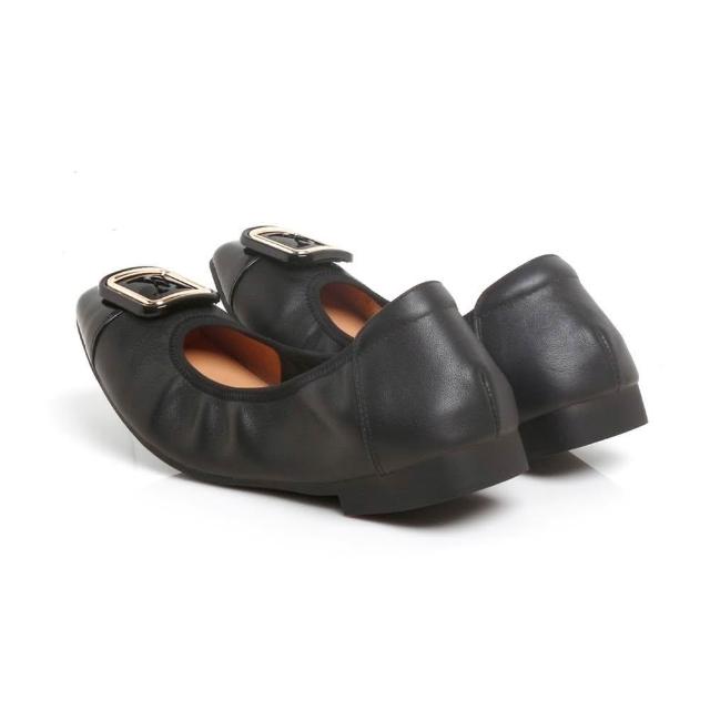 viina芳達1· 全真皮金框logo方頭摺疊平底娃娃鞋-黑(版型偏小1碼)
