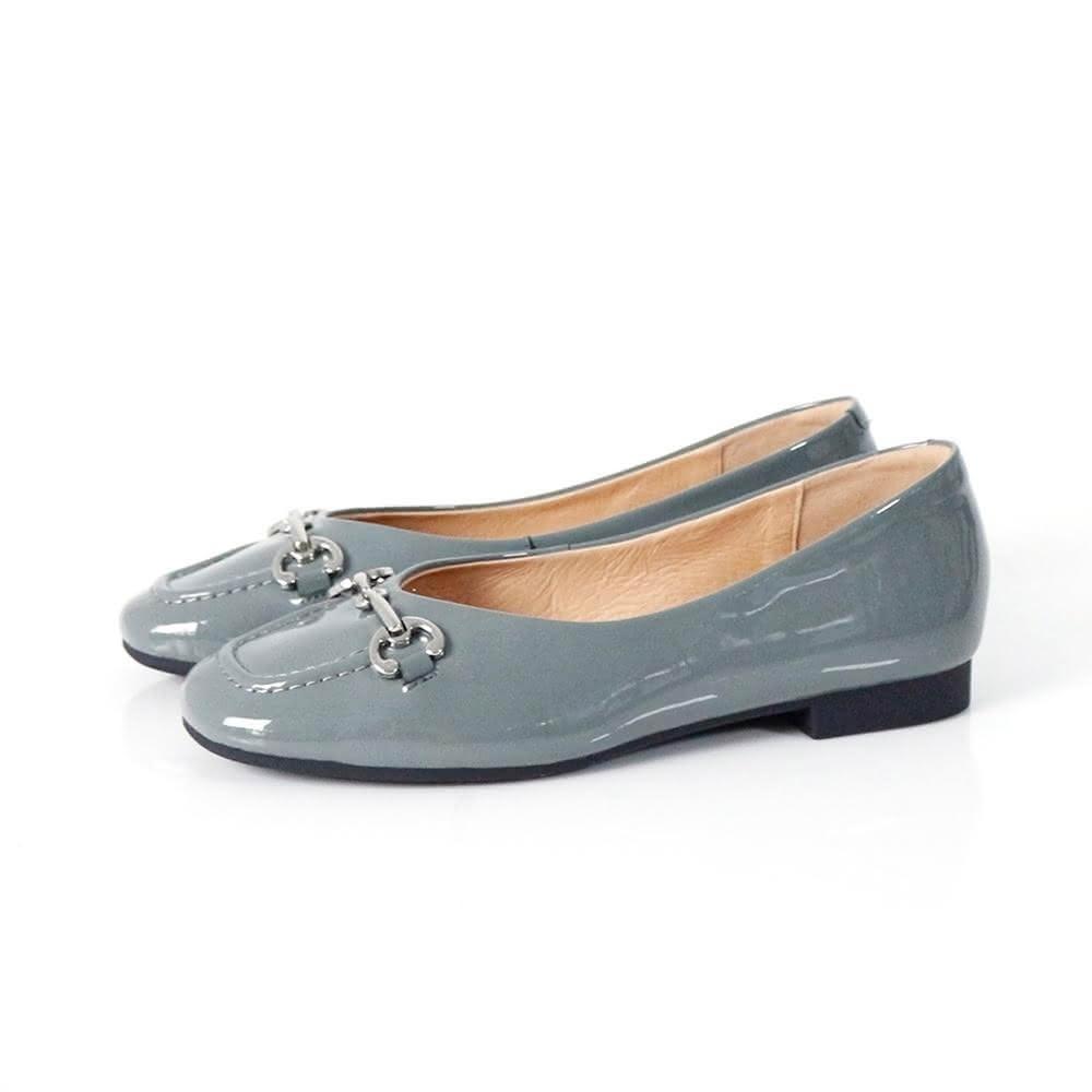 viina經典馬銜扣漆皮平底娃娃鞋-淺藍