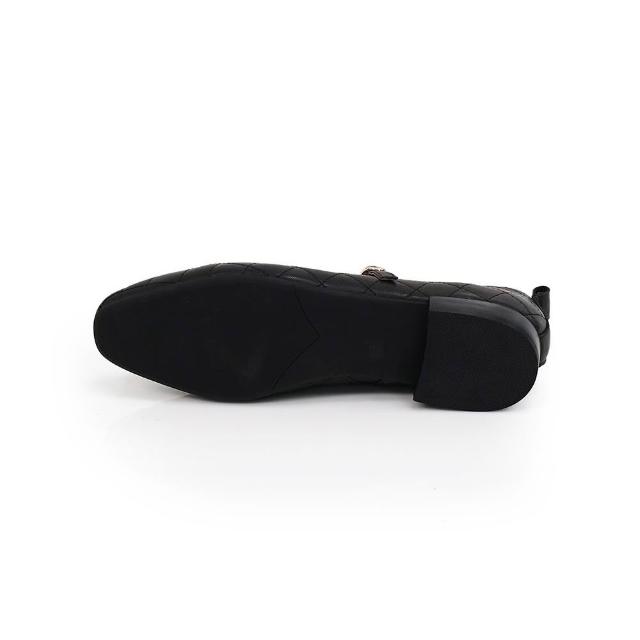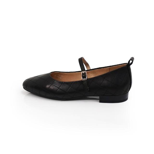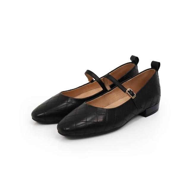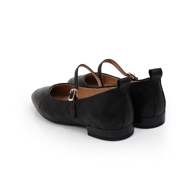 viina真皮菱格紋方頭瑪莉珍娃娃鞋-黑
