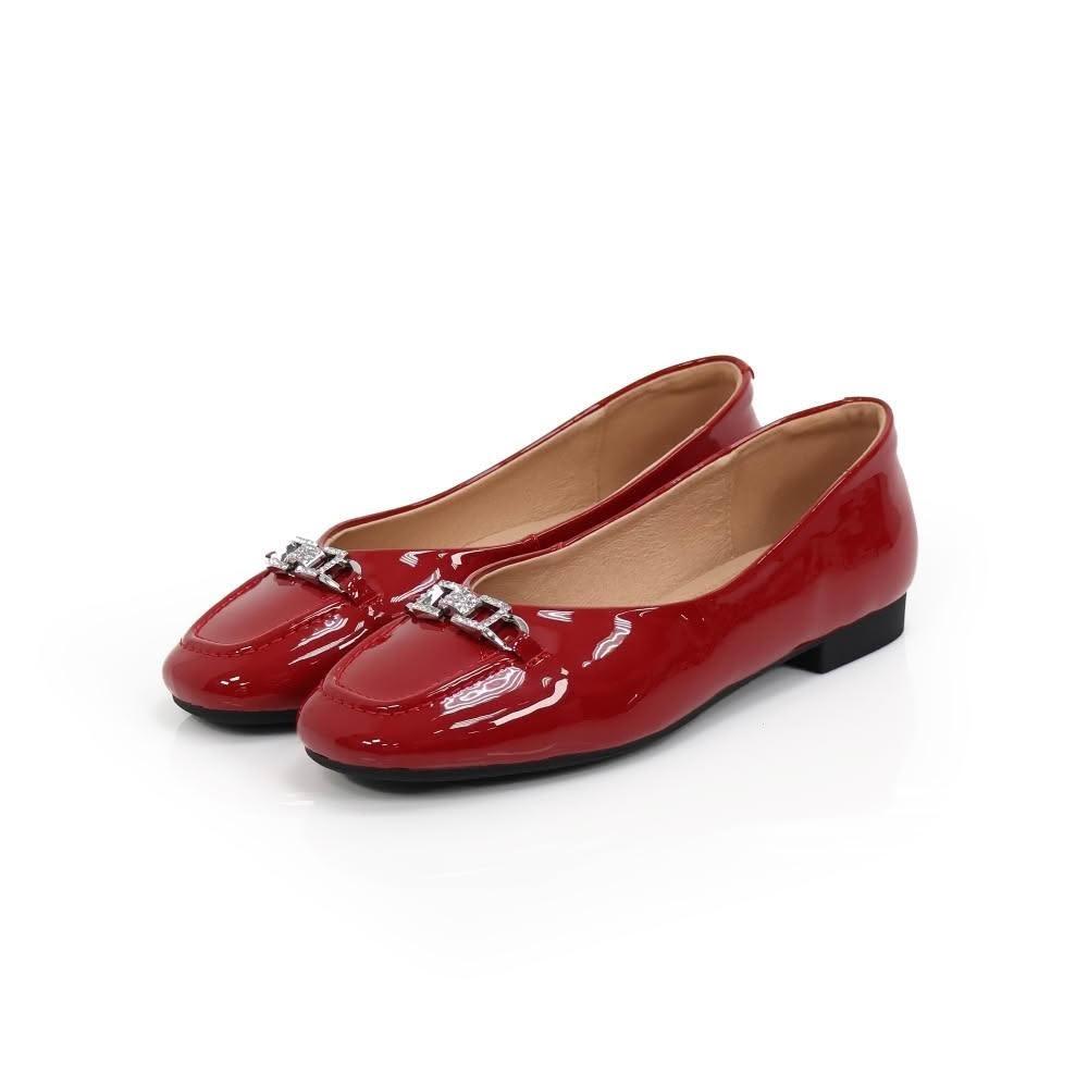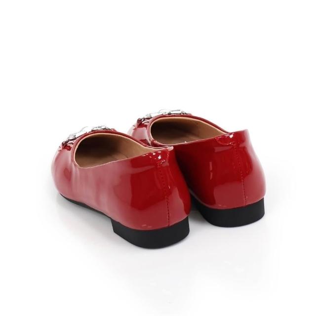 viina簡約水鑽馬銜扣漆皮平底娃娃鞋-紅