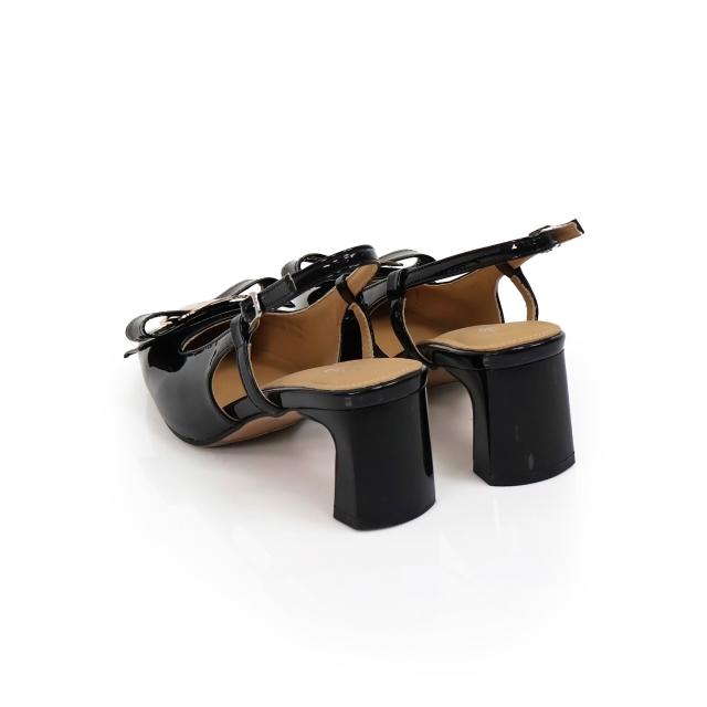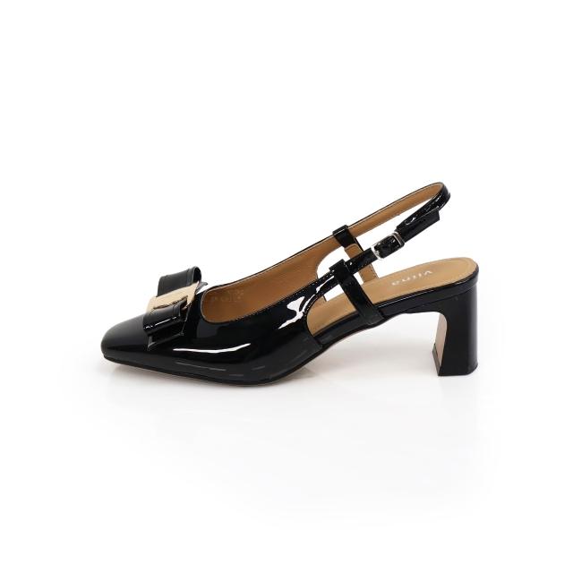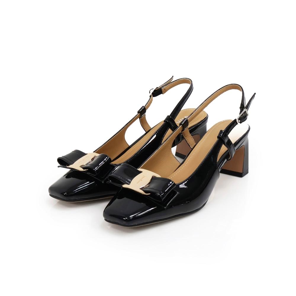 viina簡約方頭後拉帶全真皮跟鞋-黑