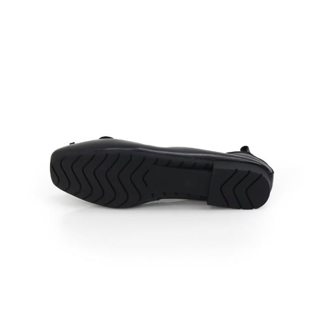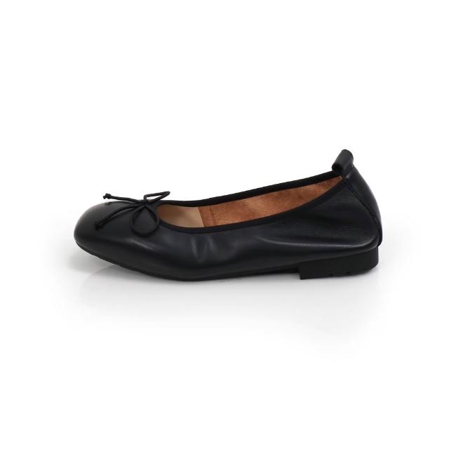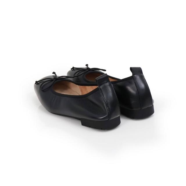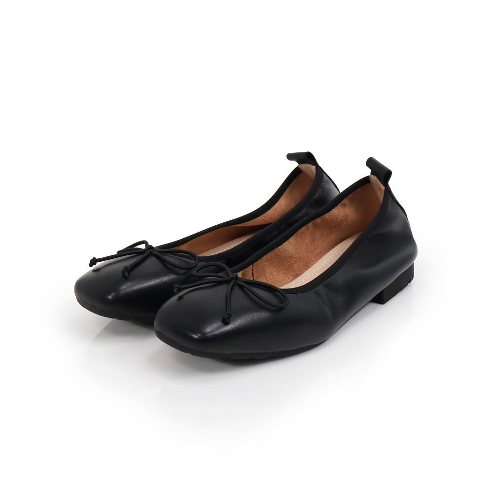 viina全真皮素面蝴蝶結平底娃娃鞋-黑
