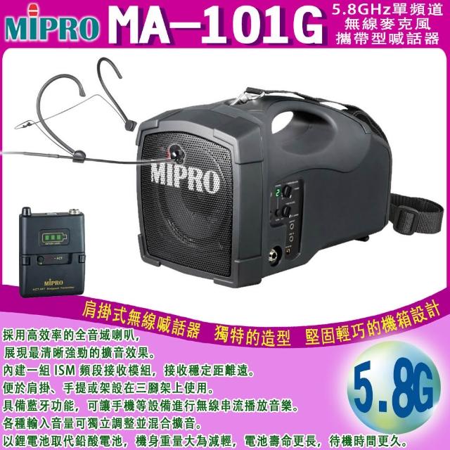 MIPROMA-101G 5.8GHz 單頻 無線麥克風 攜帶型喊話器 充電式擴音器 配1頭戴 原廠保固 嘉強公司貨