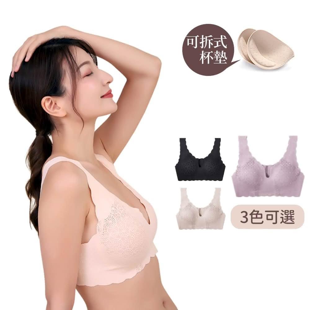 CHIEMI法式甜美蕾絲零感無痕無鋼圈內衣 可拆卸胸墊 三色