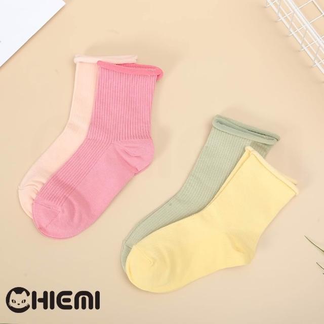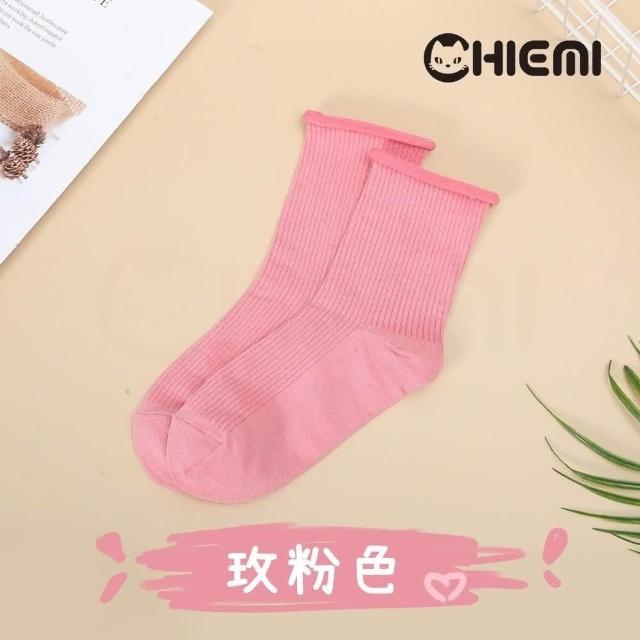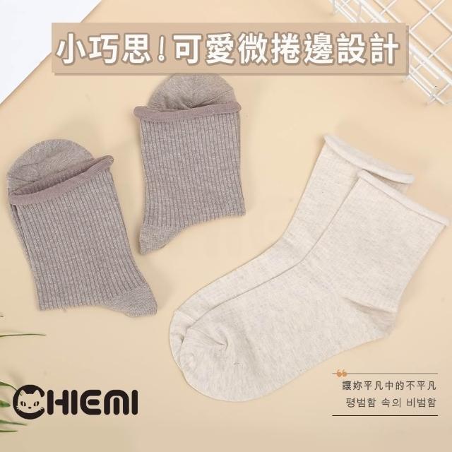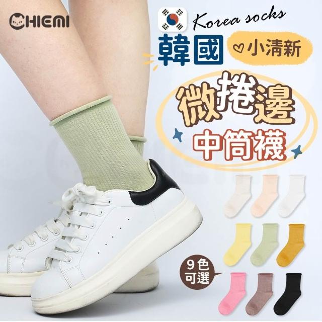 CHIEMI韓國可愛小清新微捲邊中筒襪韓國襪子 短襪 長襪 棉襪 踝襪 長筒襪 中統襪 長統襪