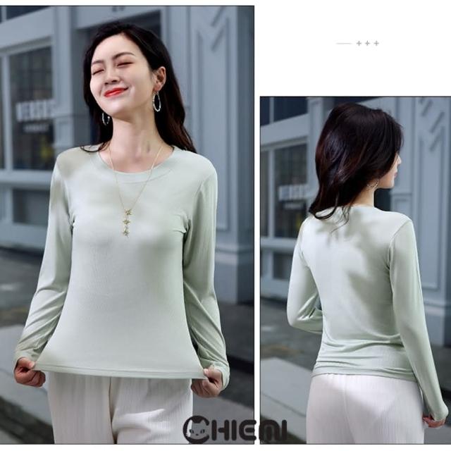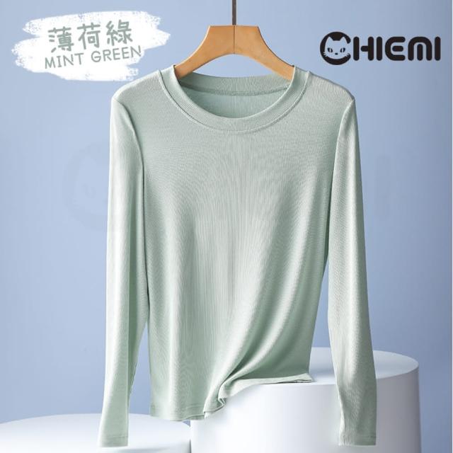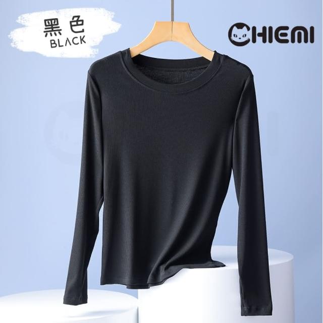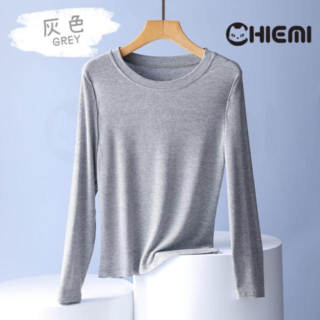 CHIEMI親膚舒適薄款羅紋修身內搭打底長袖上衣長袖T恤|內搭T恤|圓領T恤|長T|內搭衣|女裝