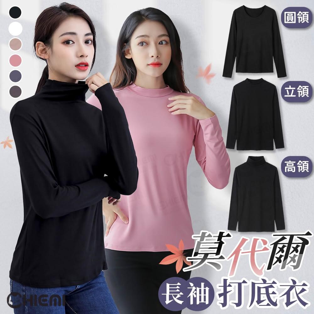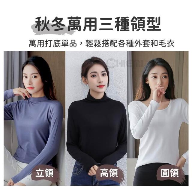 CHIEMI【立領/高領區】[秋冬打底必備🍁萬用三種領型]內搭長袖 打底衣 高領打底衣 內搭上衣 立領上衣 高領上衣