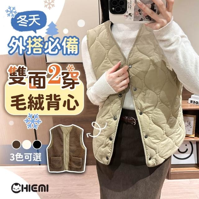 CHIEMI[冬日外搭必備⛄️正反雙面兩穿]保暖毛絨背心 馬甲 面包服 外套 女裝