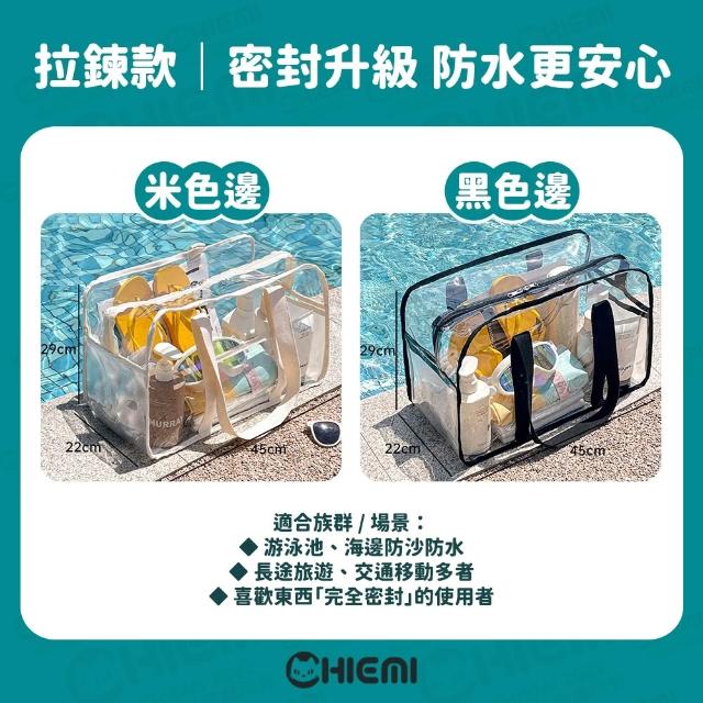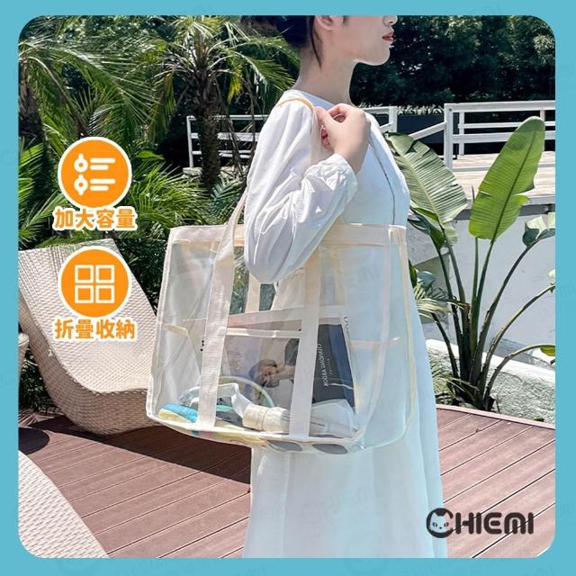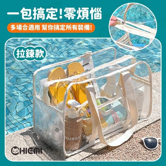 CHIEMI[奶油風🧁大容量防水果凍包] 透明提袋 收納包 游泳袋 旅行收納袋 透明收納袋 防水提袋 游泳包 沙灘包