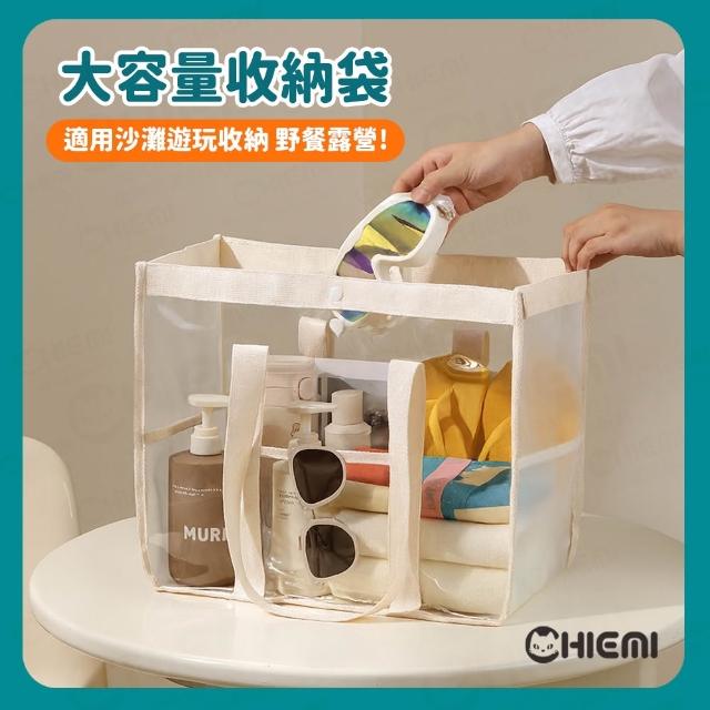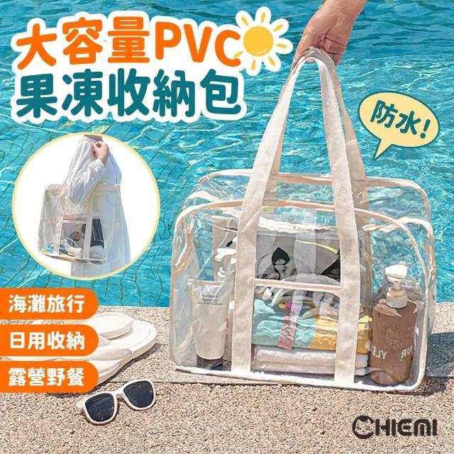CHIEMI[奶油風🧁大容量防水果凍包] 透明提袋 收納包 游泳袋 旅行收納袋 透明收納袋 防水提袋 游泳包 沙灘包