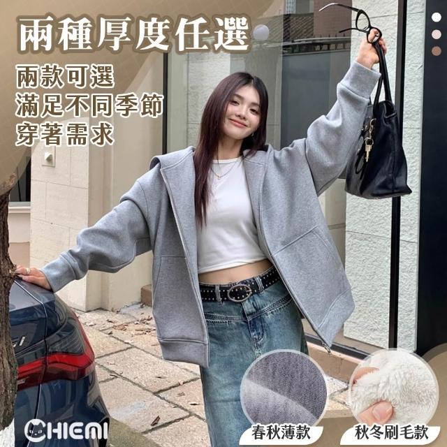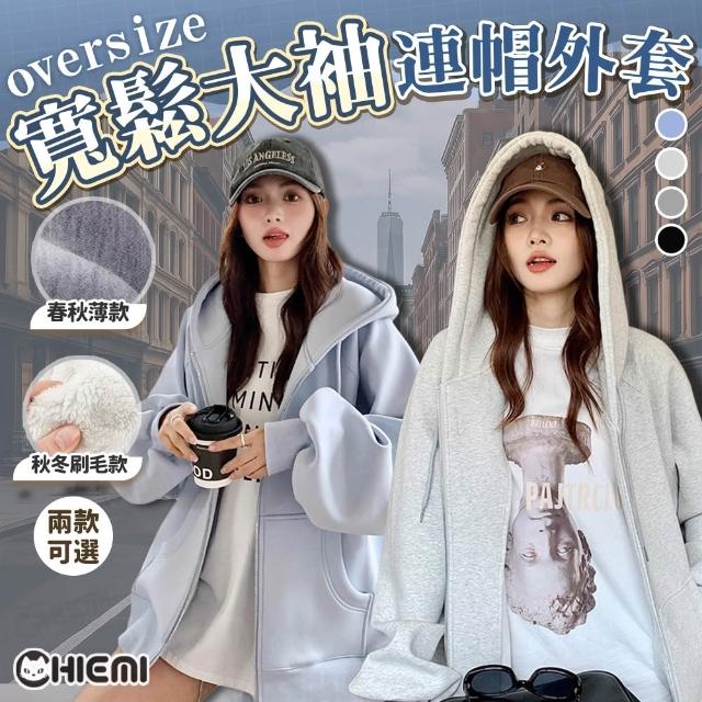 CHIEMI[新品上市🤍顯瘦慵懶大寬袖]太空棉外套 連帽外套 女生外套 刷毛外套 韓版外套 棉外套 女外套 外套 女