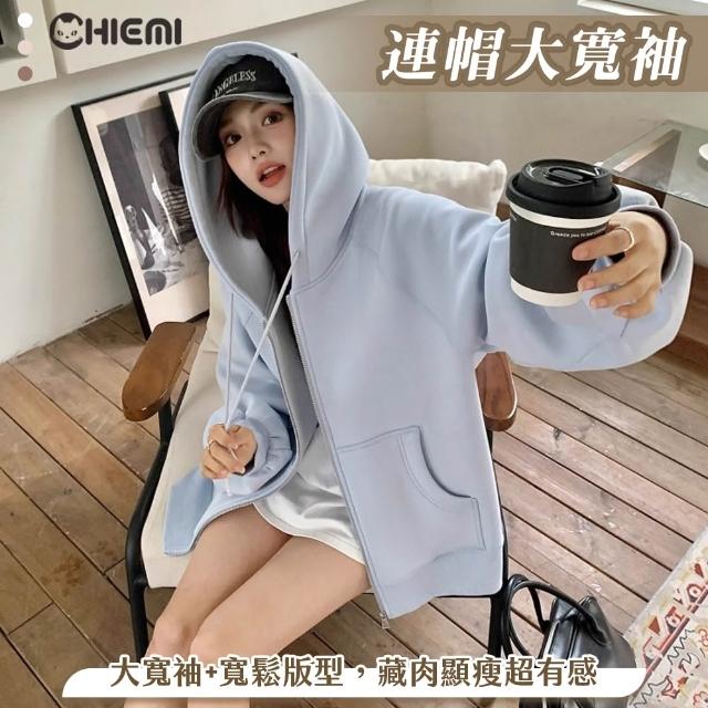 CHIEMI[新品上市🤍顯瘦慵懶大寬袖]太空棉外套 連帽外套 女生外套 刷毛外套 韓版外套 棉外套 女外套 外套 女