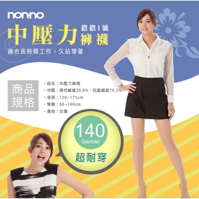 non-no 儂儂6雙組 140D 中壓力透膚美肌1號褲襪 M-LL台灣製 漸進式壓力 絲襪 久站 托高