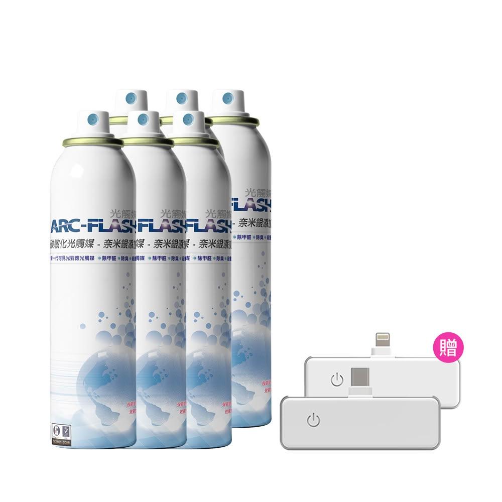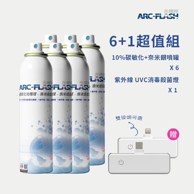 ARC-FLASH【6+1組】10%高濃度碳敏化光觸媒+奈米銀簡易型噴罐 200ml×6罐 + 紫外線UVC消毒殺菌燈×1只
