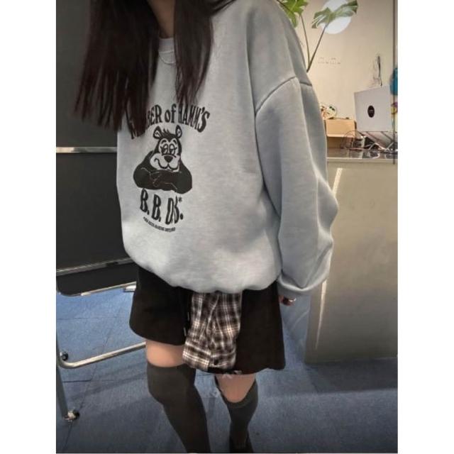 正韓女裝 | 韓國女裝 冬季新款 熊熊內絨毛上衣