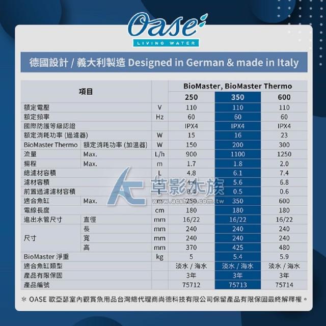 OASE 德國德國 OASE 歐亞瑟 BioMaster 350 外置式過濾器 (AC草影)