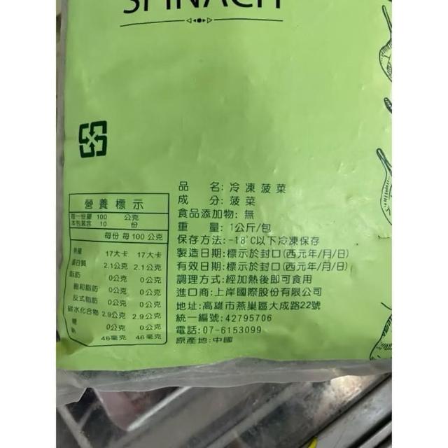 誠實討海人中國 冷凍菠菜 1kg±15g/包(#生鮮#菠菜#菠菜#青菜#蔬菜#冷凍蔬菜)